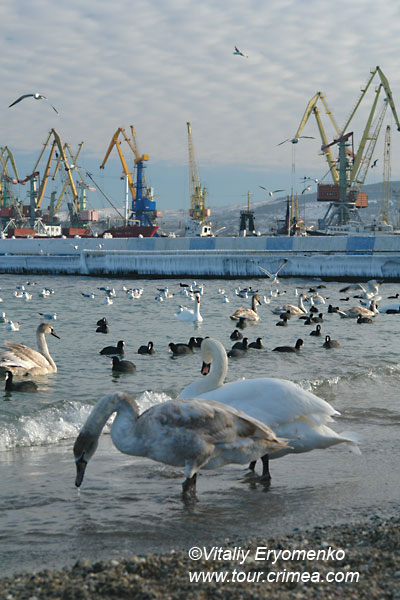Лебеди в Феодосии