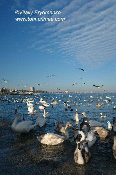 Лебеди в Феодосии