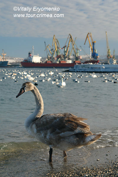 Лебеди в Феодосии